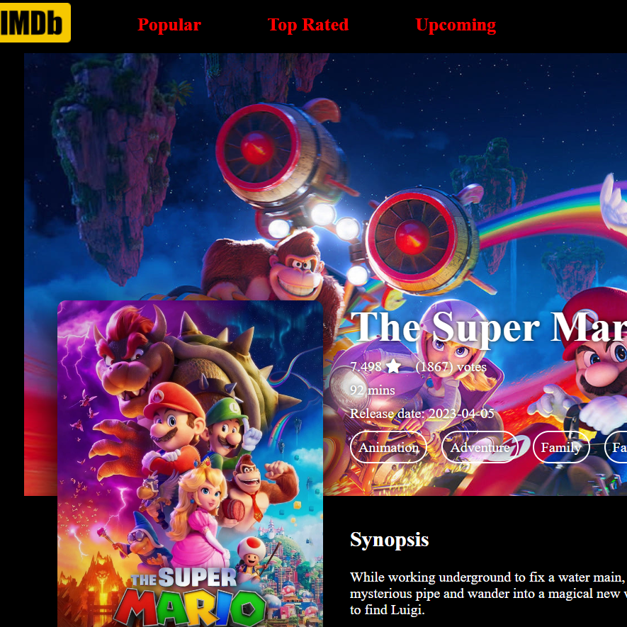 I have created IMDb clone with the help of React and context. It has components like popular , top rated.
